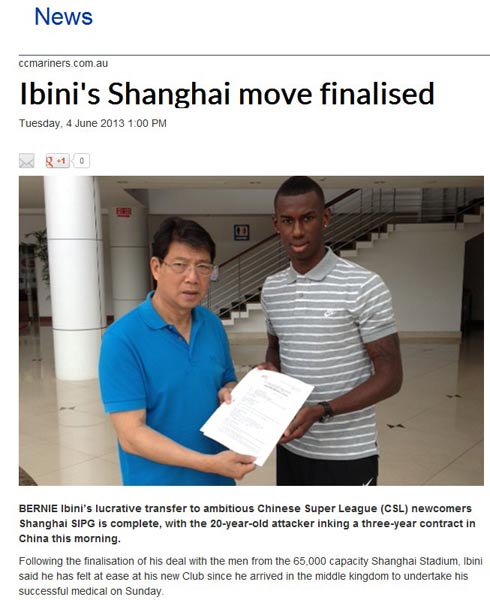 中央海岸水手官网4日宣布,球队队员伊比尼已经在转会合同上签字,正式转会中超的上海东亚俱乐部。不过中央海岸水手官网并没有对外公布转会的相关细节,而据了解,双方将签约一年,伊比尼的年薪在40万美元。伊比尼出生于尼日利亚,少年时代移民到澳大利亚,今年21岁,在此前亚冠联赛中央海岸水手与恒大的比赛中,他首发出场,并且有过一次助攻。